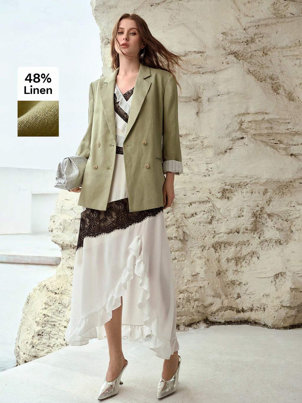 LINEN BLEND LOOSE FIT DOUBLE-BREASTED BLAZER
