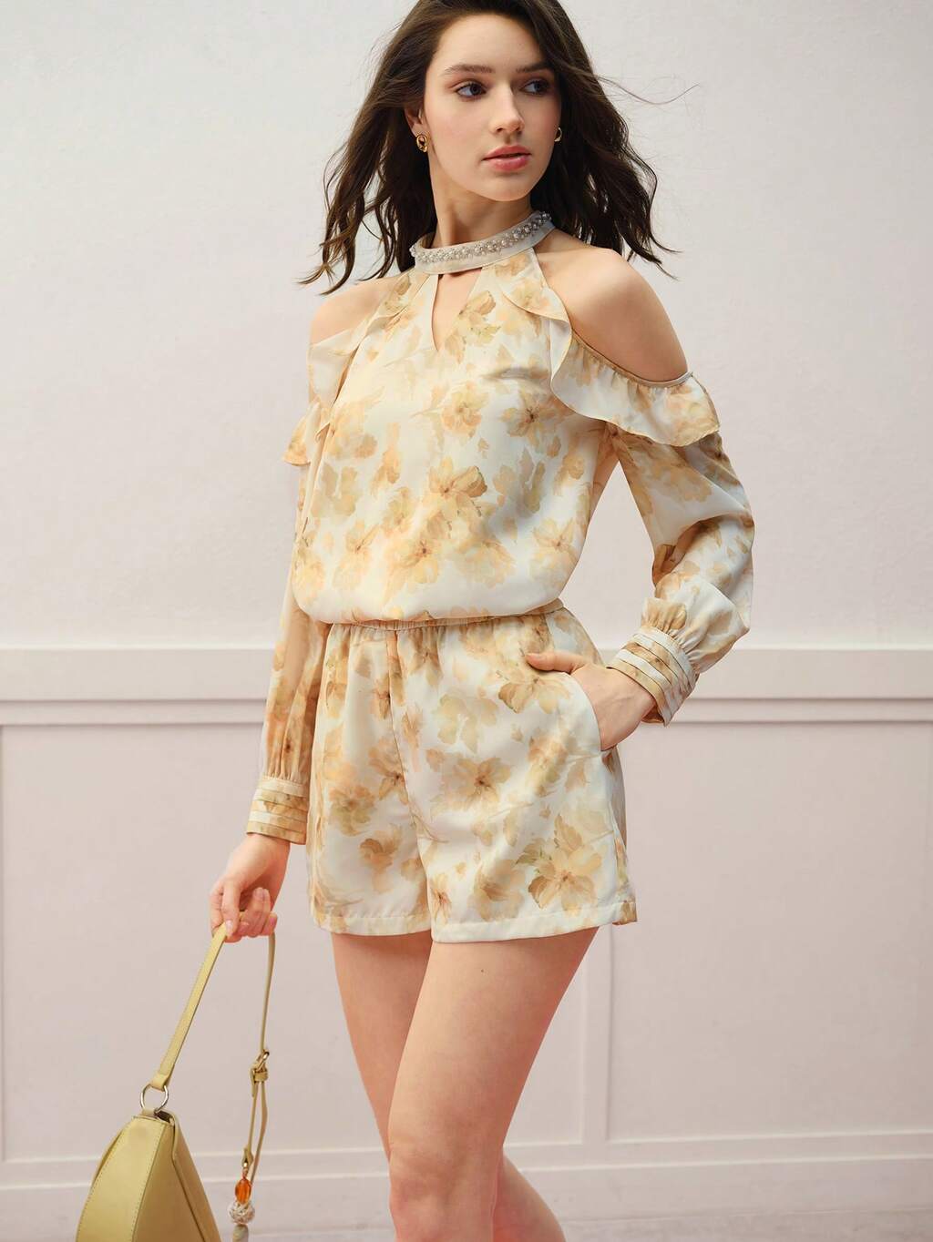 FLORAL PRINT COLD SHOULDER BLOUSE