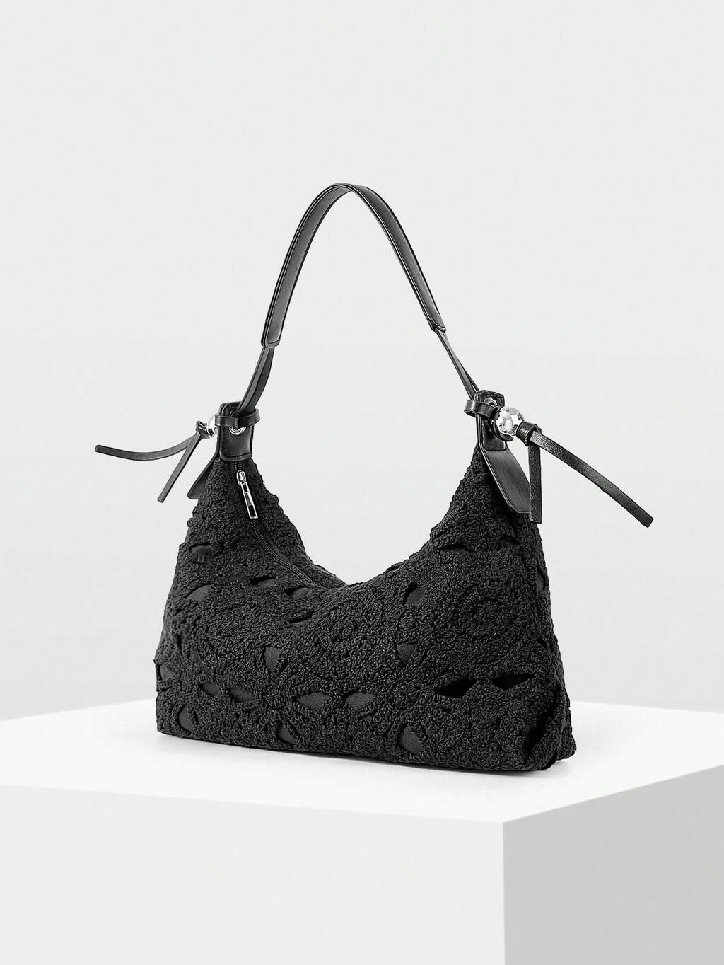 A STYLISH AND MINIMALIST SHOULDER BAG WITH A DELICATE METAL PENDANT IS SUITABLE FOR COMMUTING AND SHOPPING.