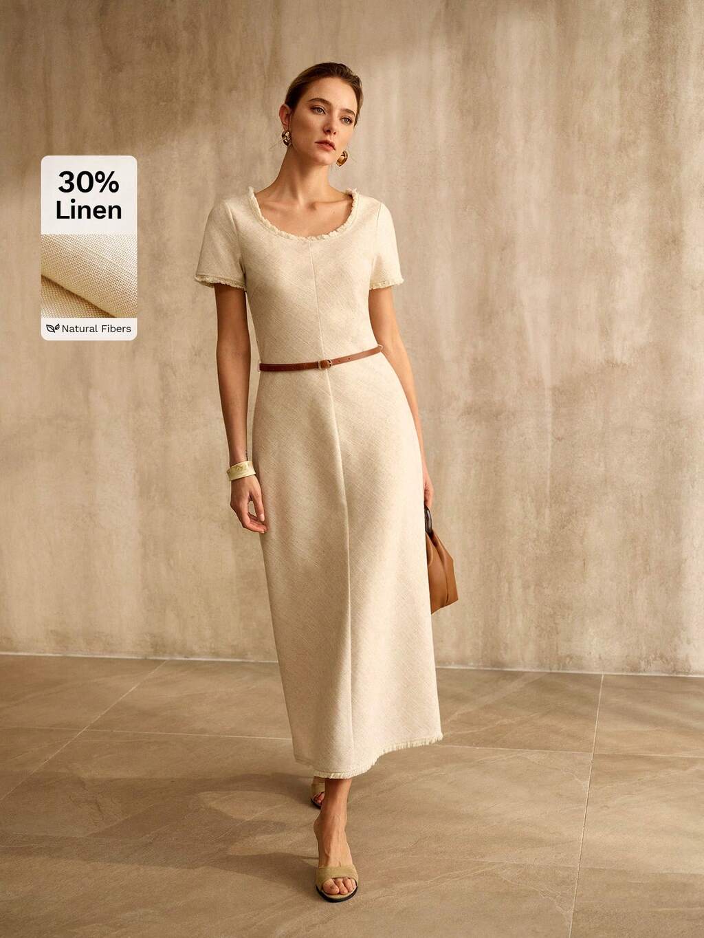 WOMEN'S LINEN BLEND STRUCTURED MID-LENGTH DRESS