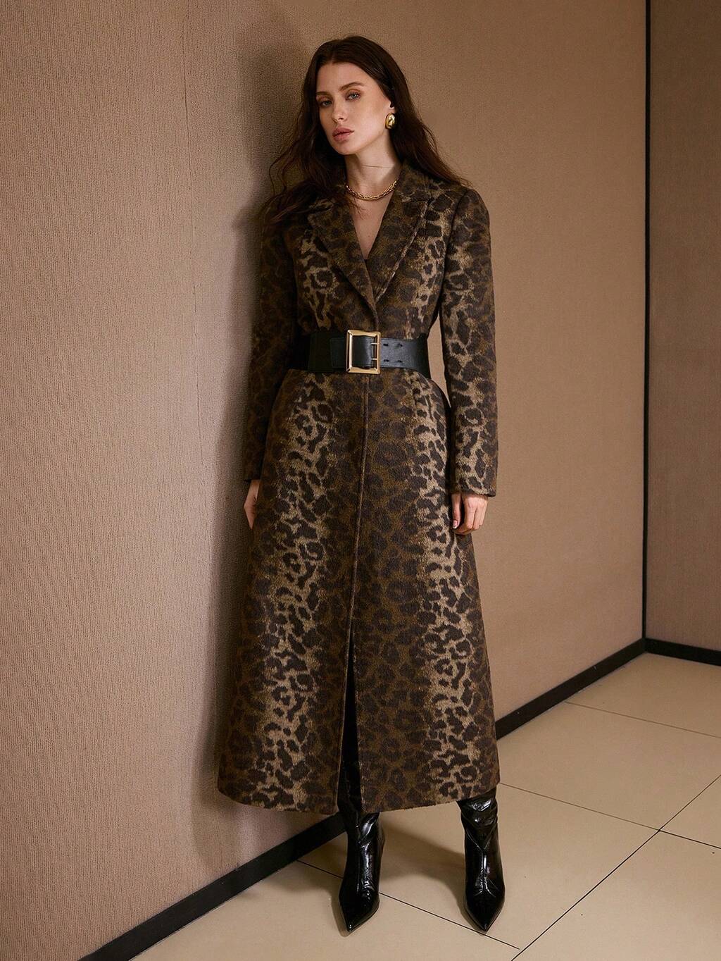 LEOPARD PRINT CINCHED WAIST LONG OVERCOAT, AUTUMN/WINTER