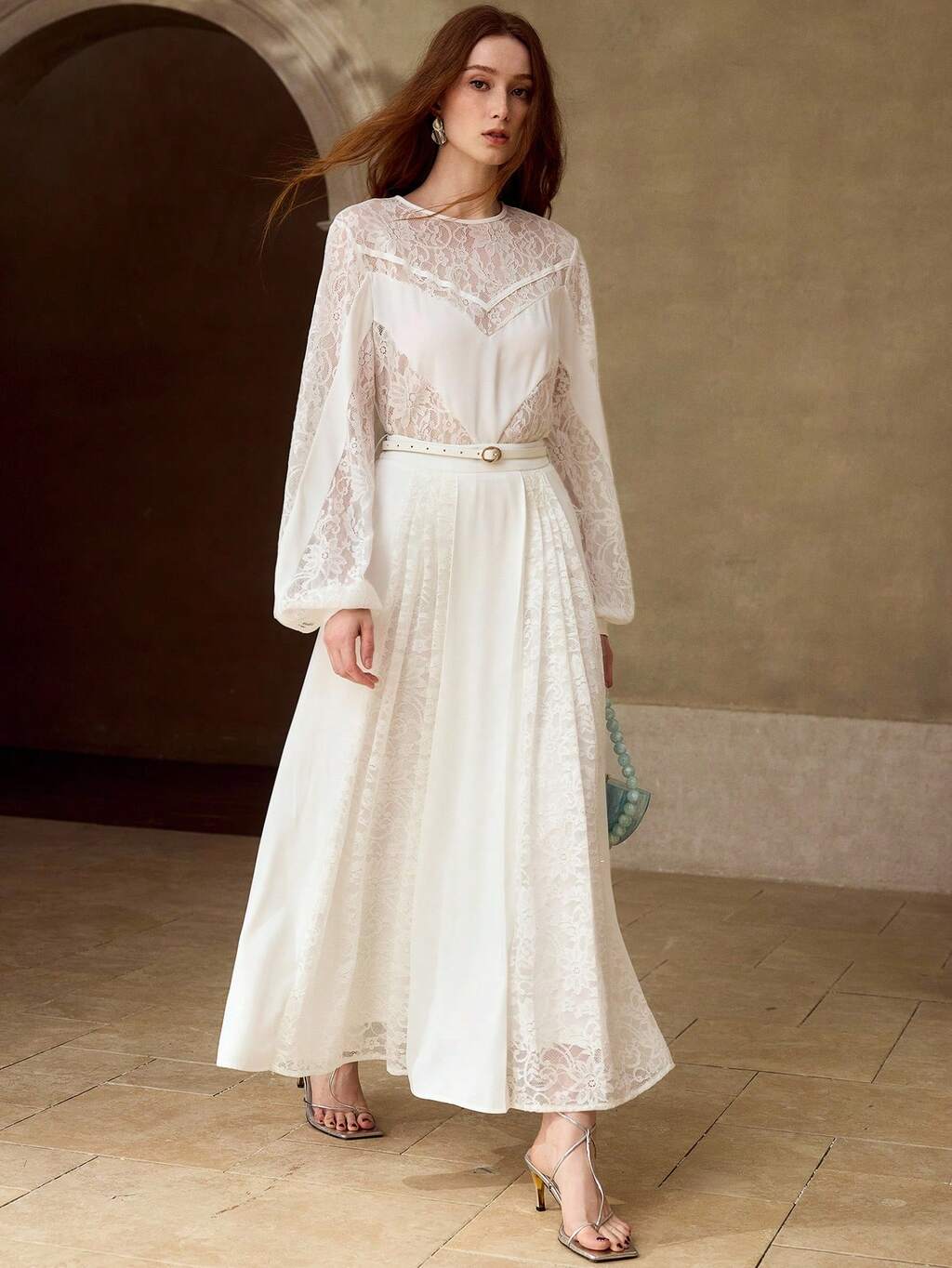 WOMEN'S ROMANTIC LACE PATCHWORK ROUND NECK LONG SLEEVE BLOUSE, SPRING/SUMMER
