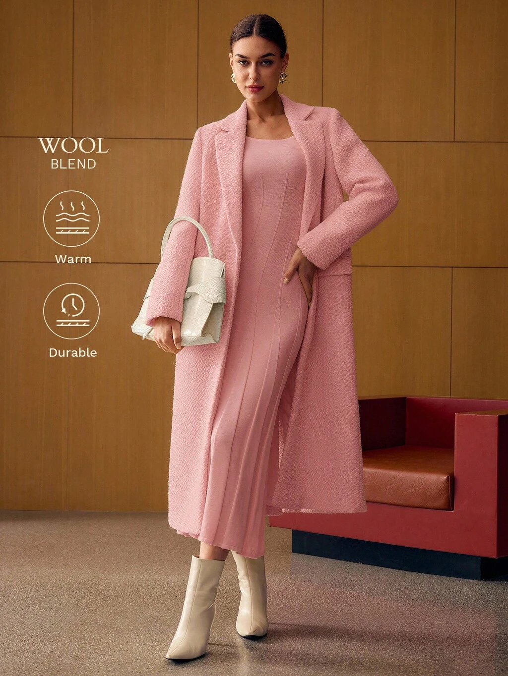WOMEN'S ELEGANT WOOL DOUBLE BREASTED OVERCOAT, AUTUMN/WINTER