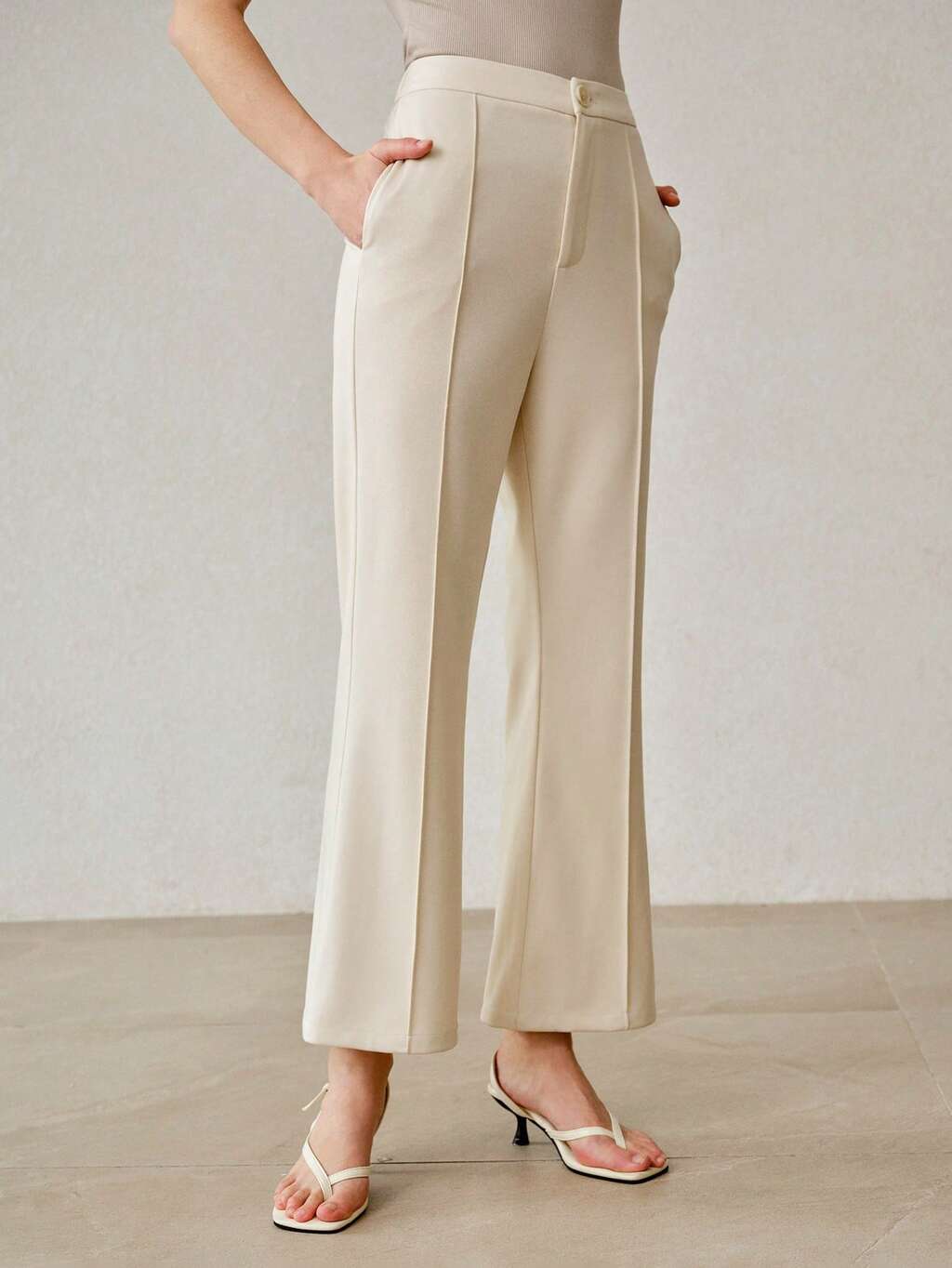 Damskie spodnie biurowe z szerokimi nogawkami i zakładkami