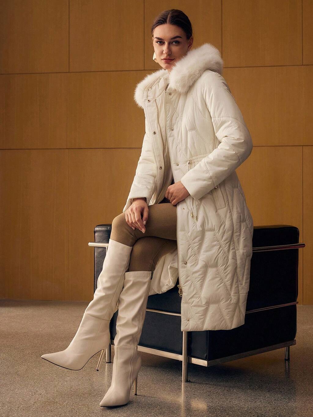 ZIMOWY PŁASZCZ Z KAPTUREM I WYKOŃCZENIEM FUZZY