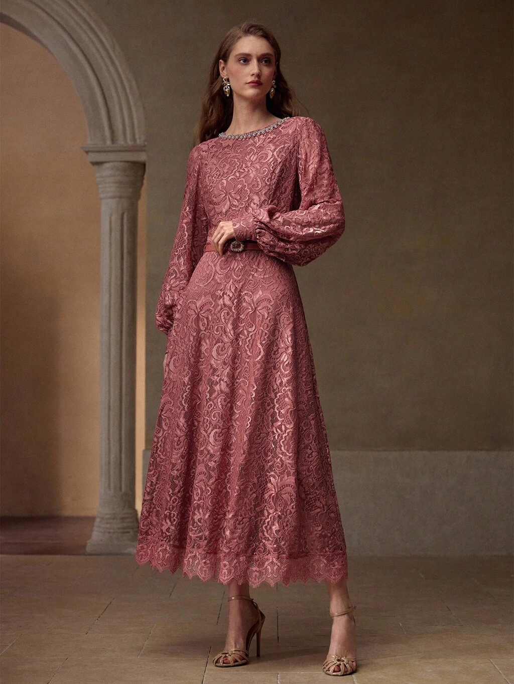 ZEYLAH Damski koronkowy i cekinowy top z długim rękawem i spódnicą midi Elegancki garnitur, jesień/zima