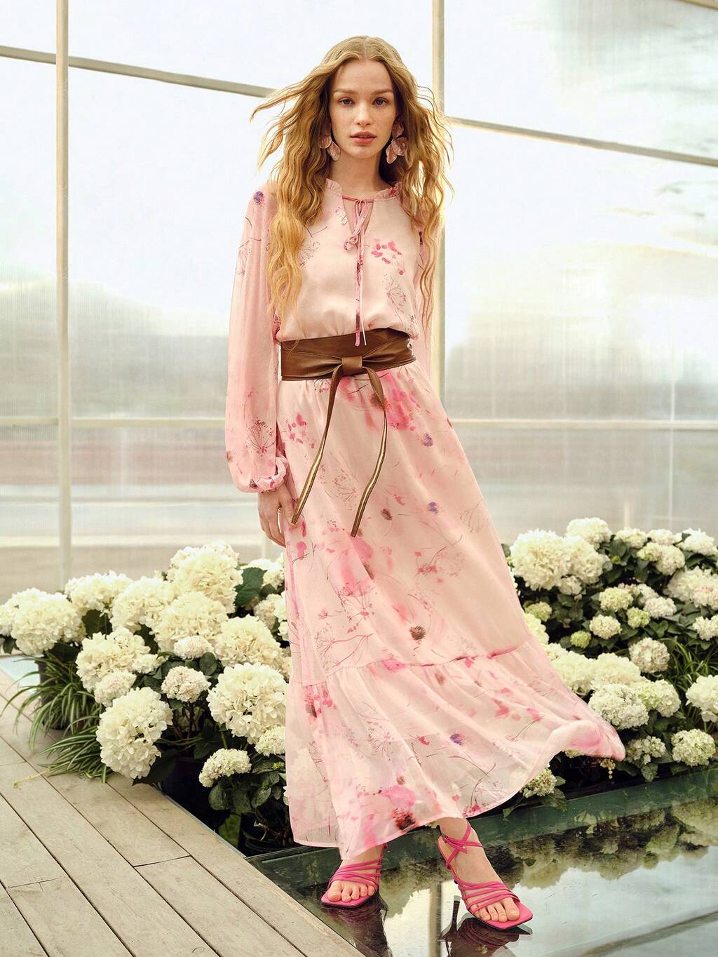 ROMANTYCZNA SUKIENKA Z WIĄZANYM KOŁNIERZEM I RĘKAWAMI W KWIATY, WIOSNA/LATO