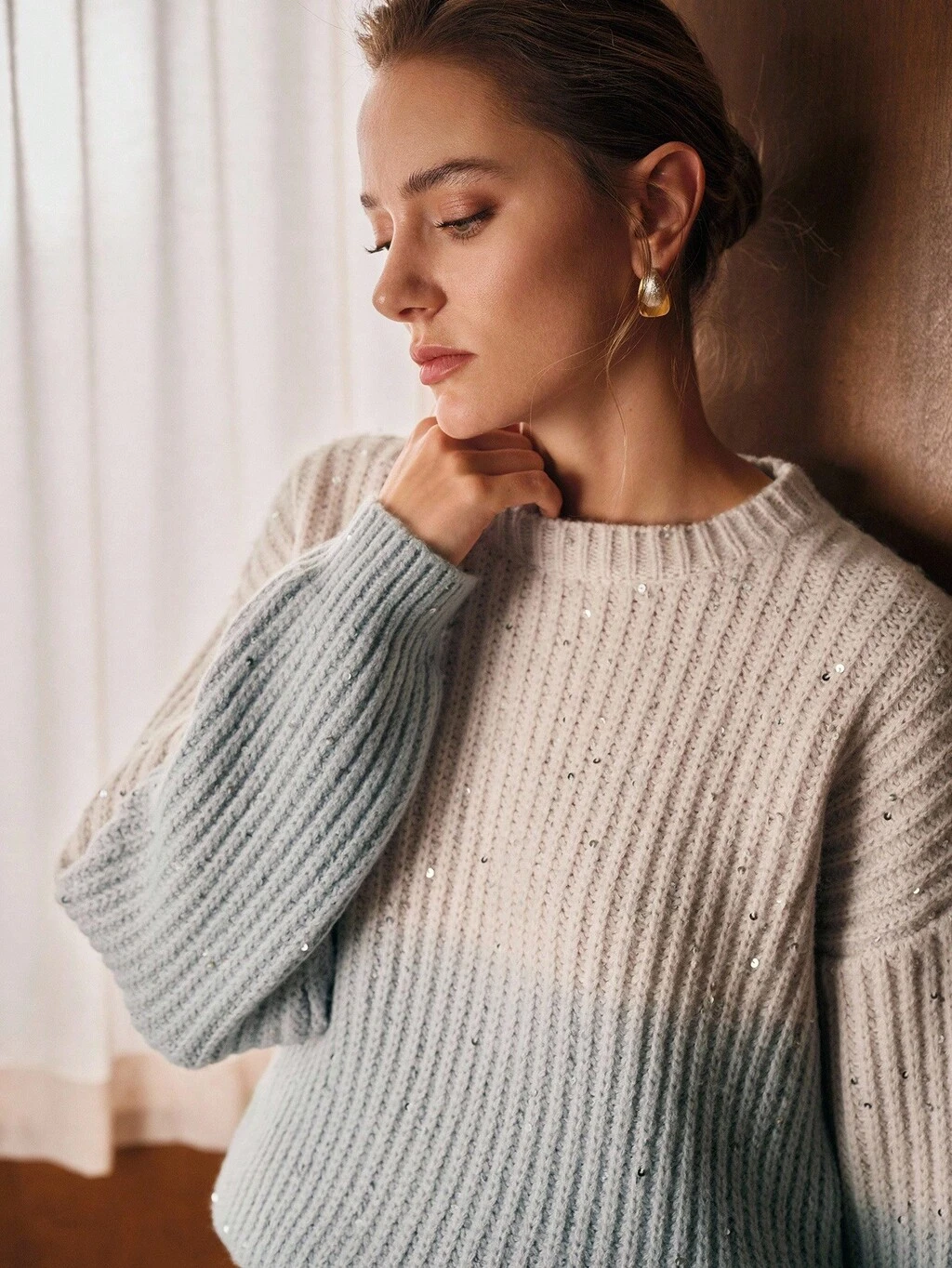 SWETER Z KONTRASTOWYMI CEKINAMI W STYLU OMBRE NA JESIEŃ I ZIMĘ