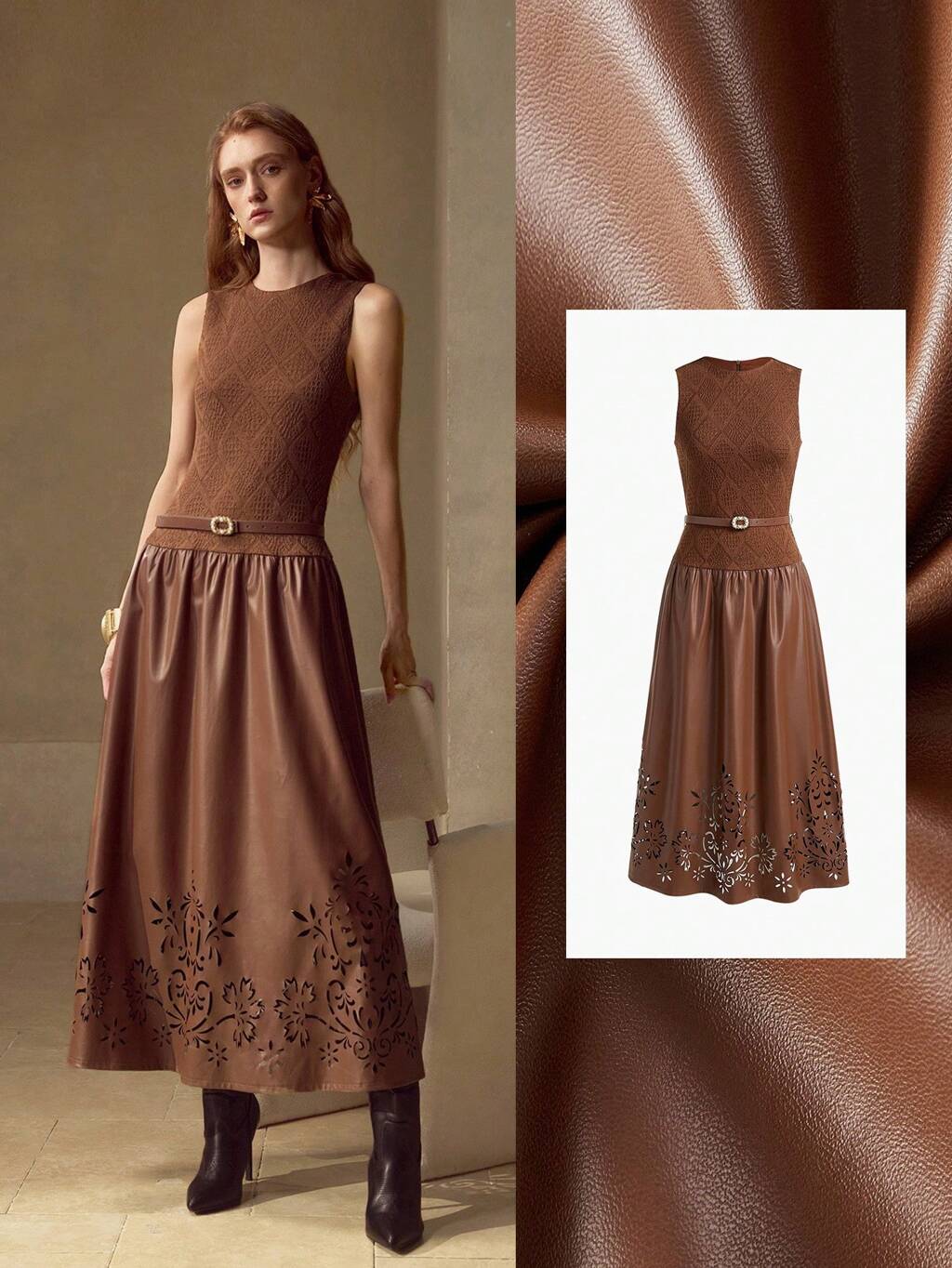 SUKIENKA Z PASKIEM Z PU SKÓRY