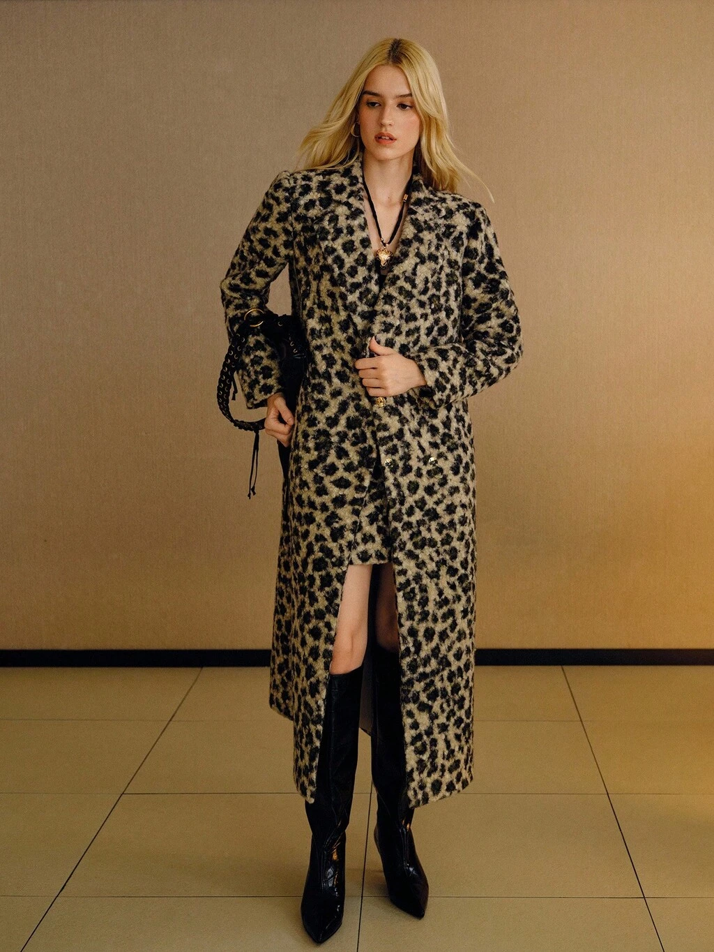 PŁASZCZ Z KOŁNIERZEM Z PANTERKĄ I PLECAMI, WZÓR Z PUSZYSTYM WZOREM I DWURZĘDOWYM ZAPIĘCIEM