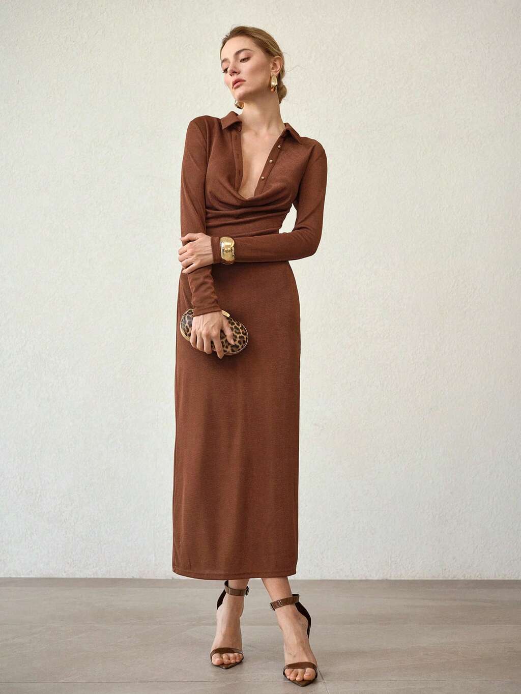 Elegancka sukienka damska midi o kroju litery A, dopasowana sylwetka, idealna na randki, wiosna/lato