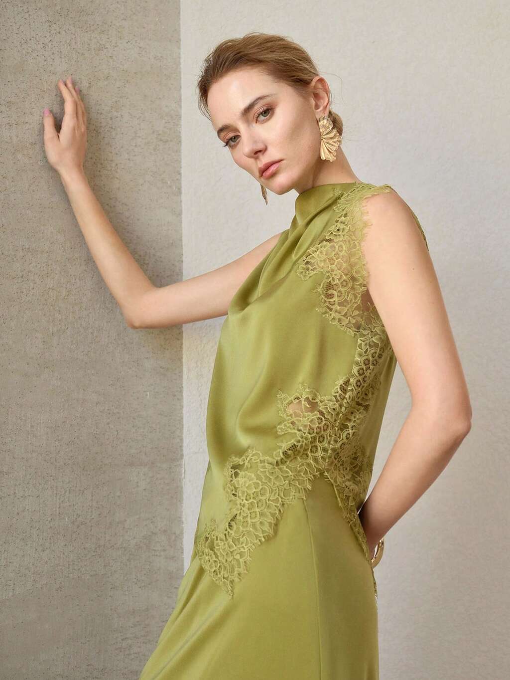 Satynowy elegancki top z koronką patchworkową, WIOSNA/LATO