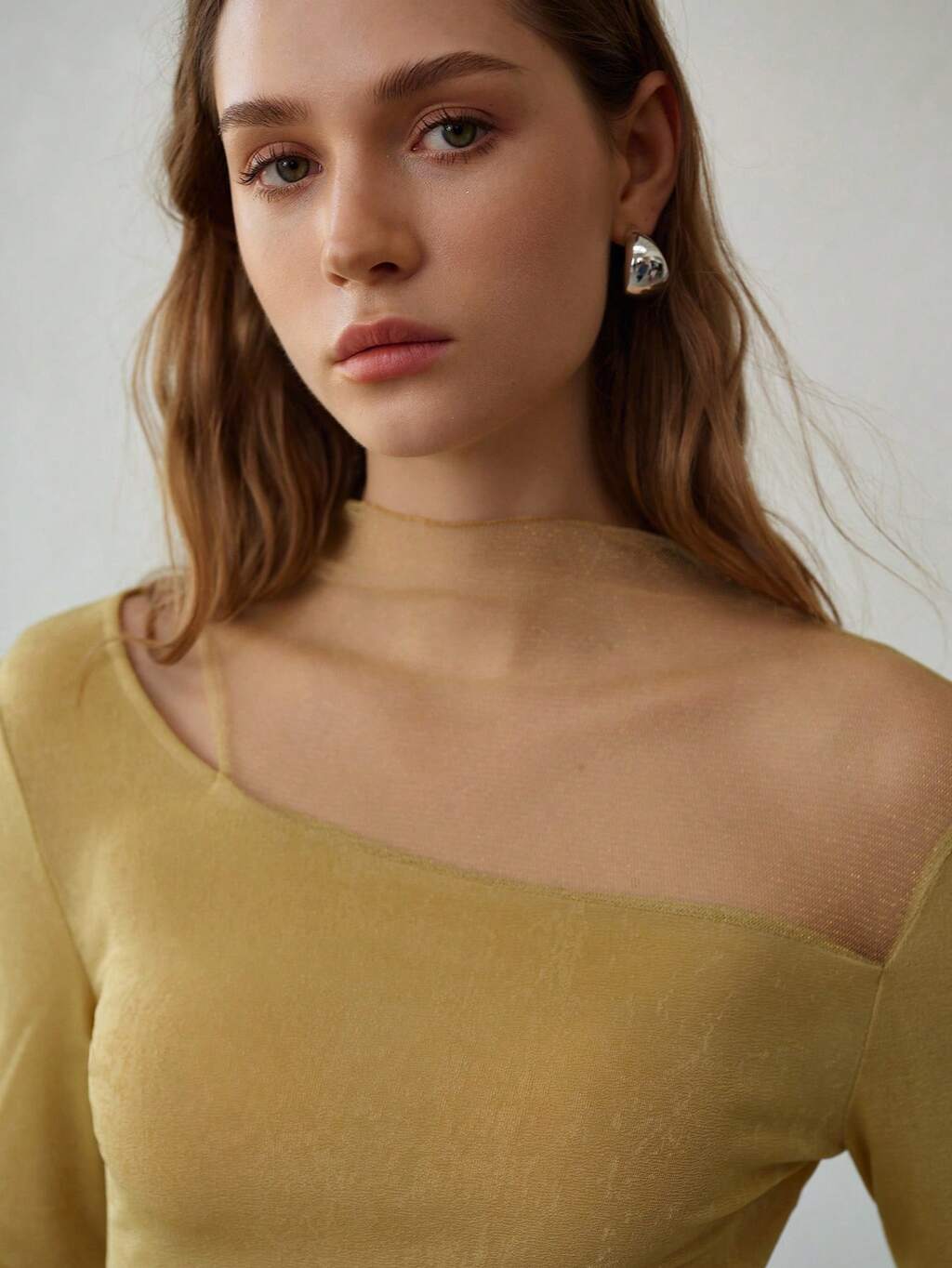 Koszulka w stylu vintage z długim rękawem i plisowanym dekoltem w kształcie łódki, zdobiona metalową klamrą, WIOSNA/LATO
