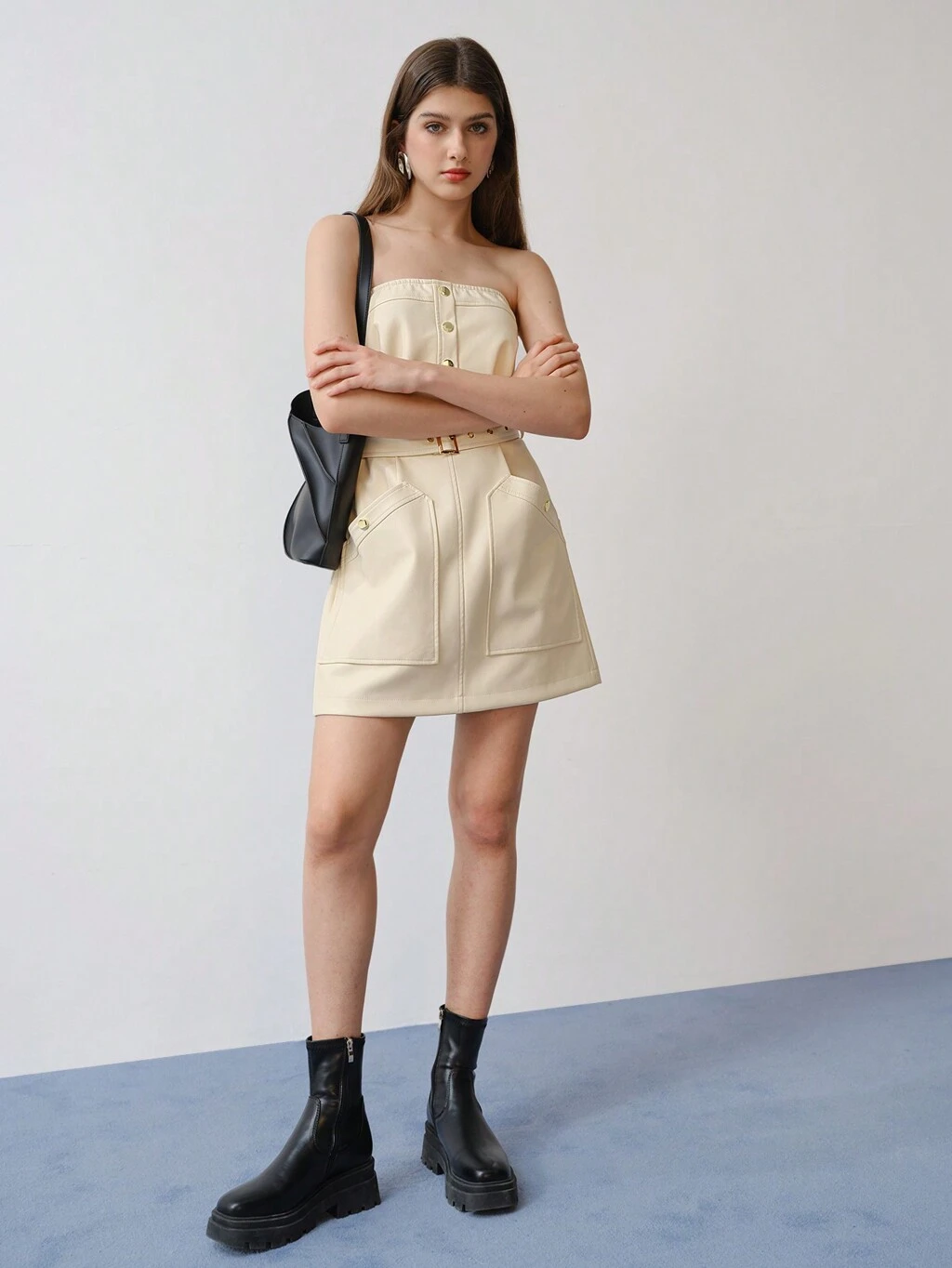 MOTF STUDIO MINI VESTIDO TUBINHO COM CINTO DE COURO PU