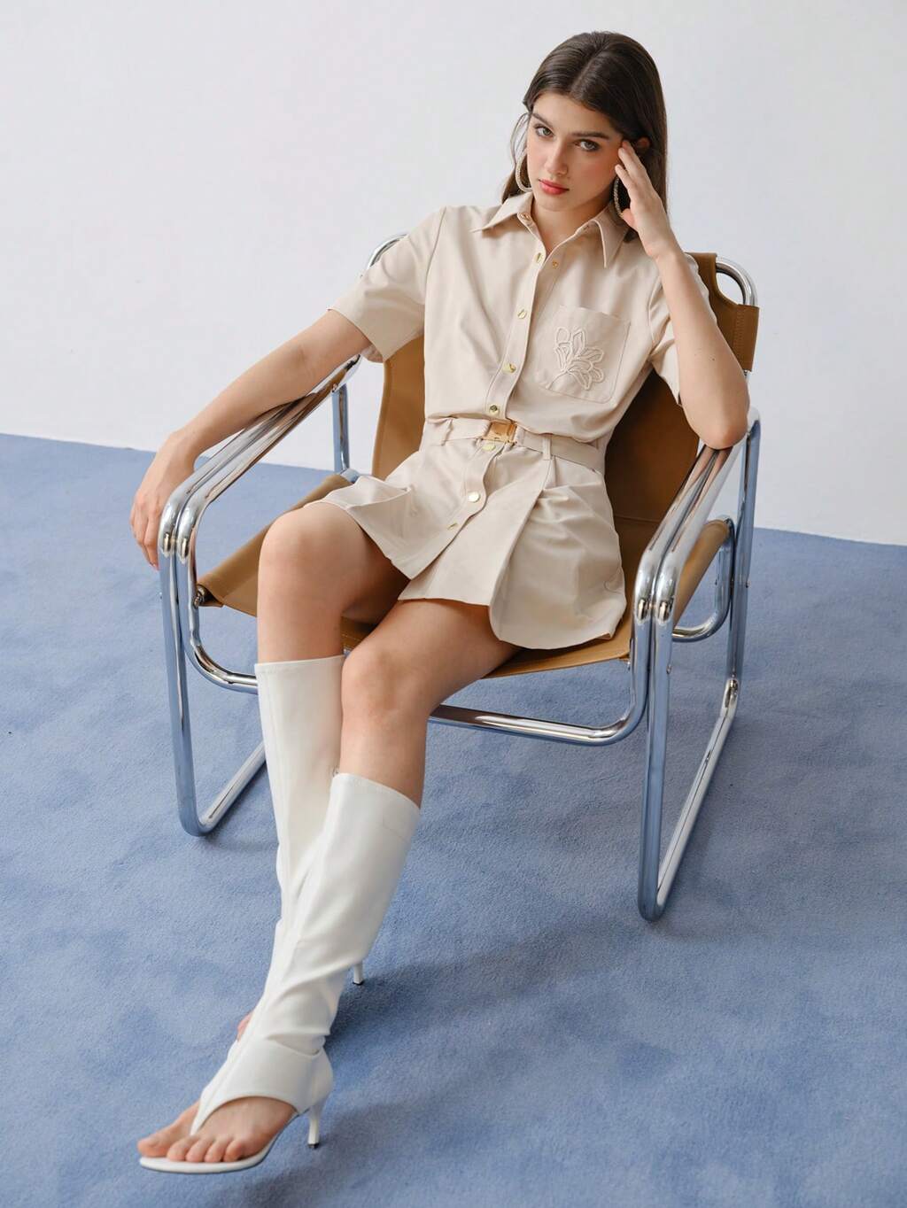 VESTIDO COM FENDA NA COXA E FIVELA DE STRASS
