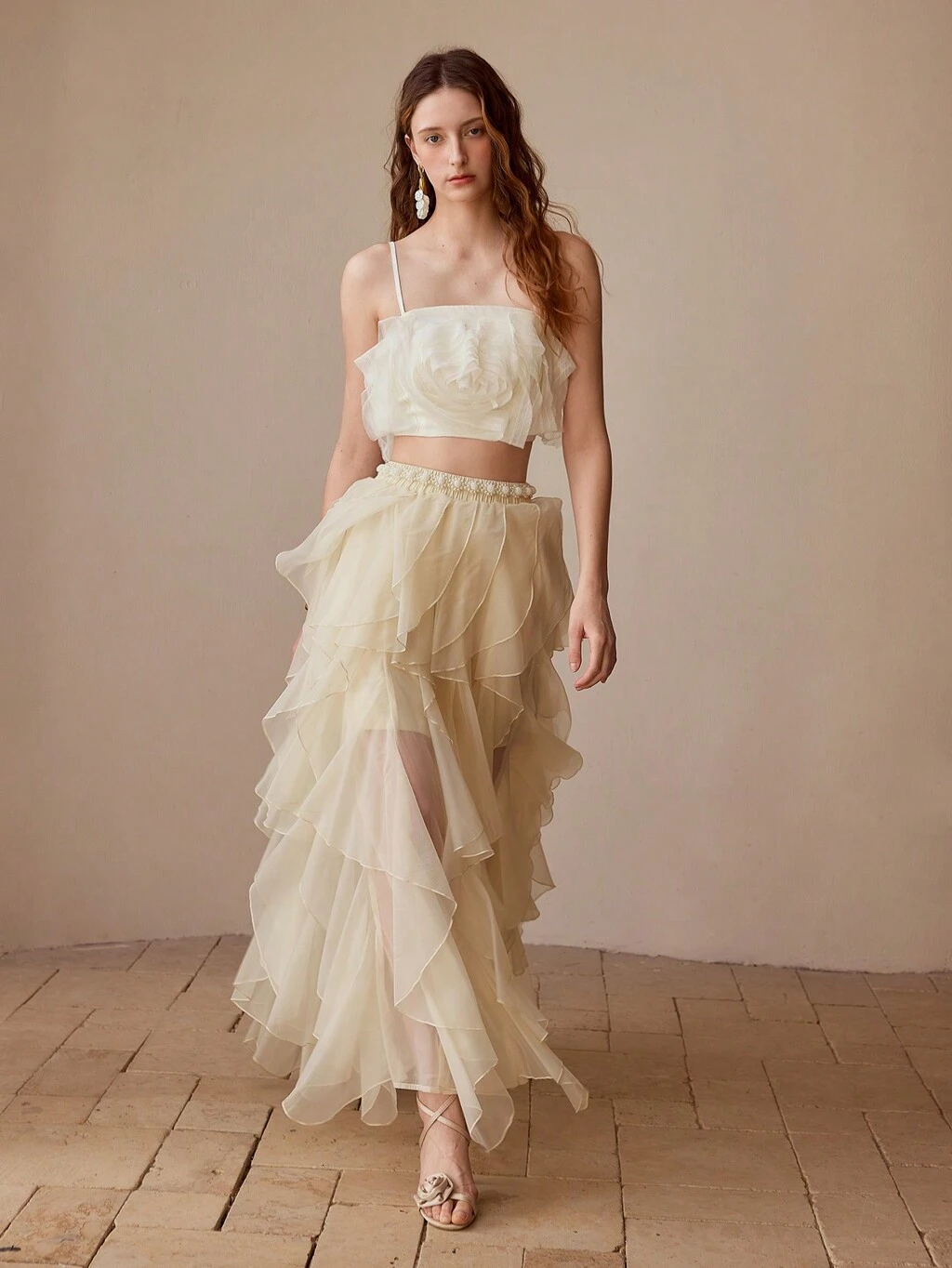 MOTF STUDIO BLUSA SEM MANGAS COM BABADO FLORAL ESTÉREO DE RENDA