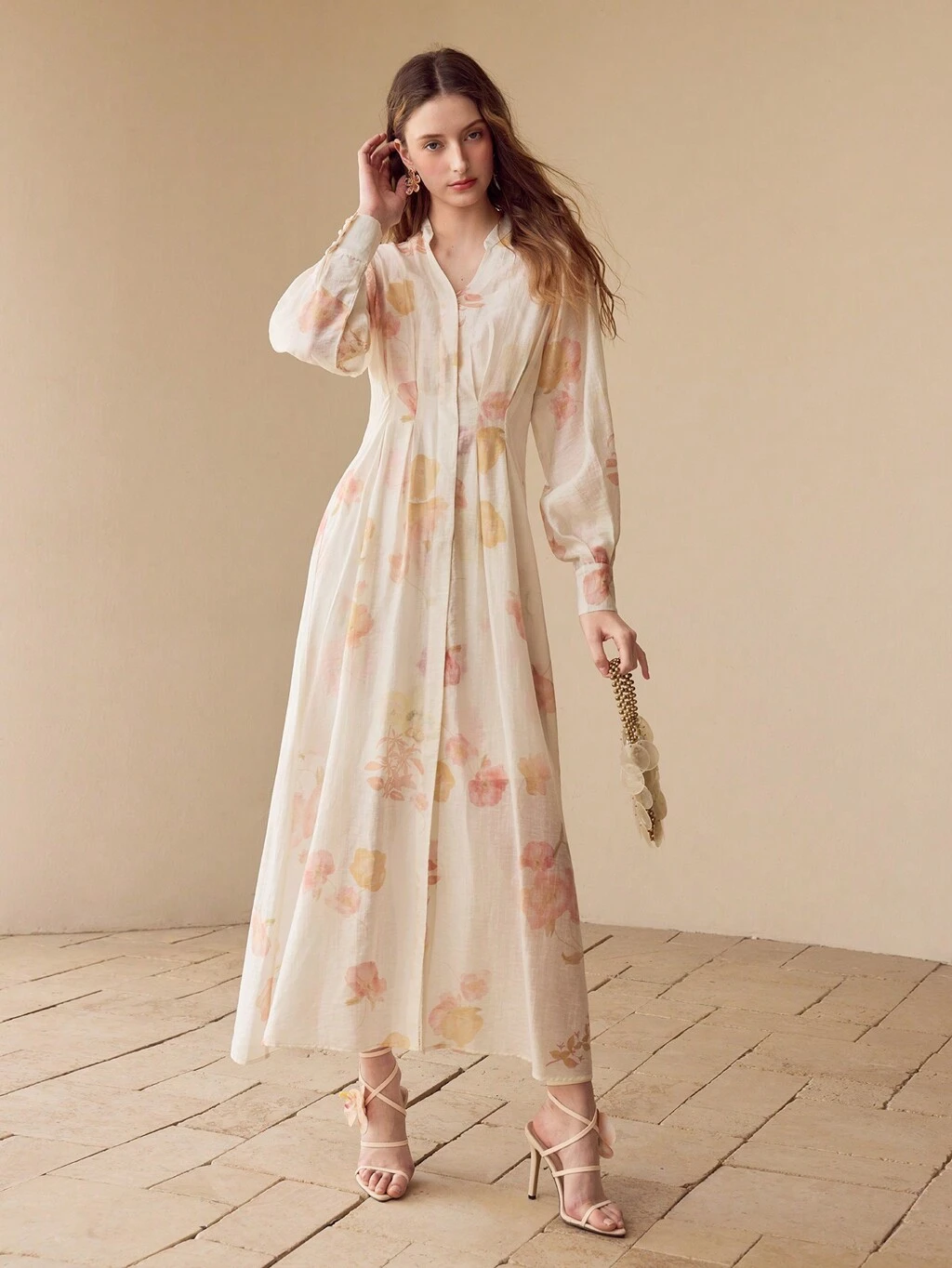 VESTIDO FLORAL ROMÂNTICO ASSIMÉTRICO PARA MULHERES, PRIMAVERA/VERÃO
