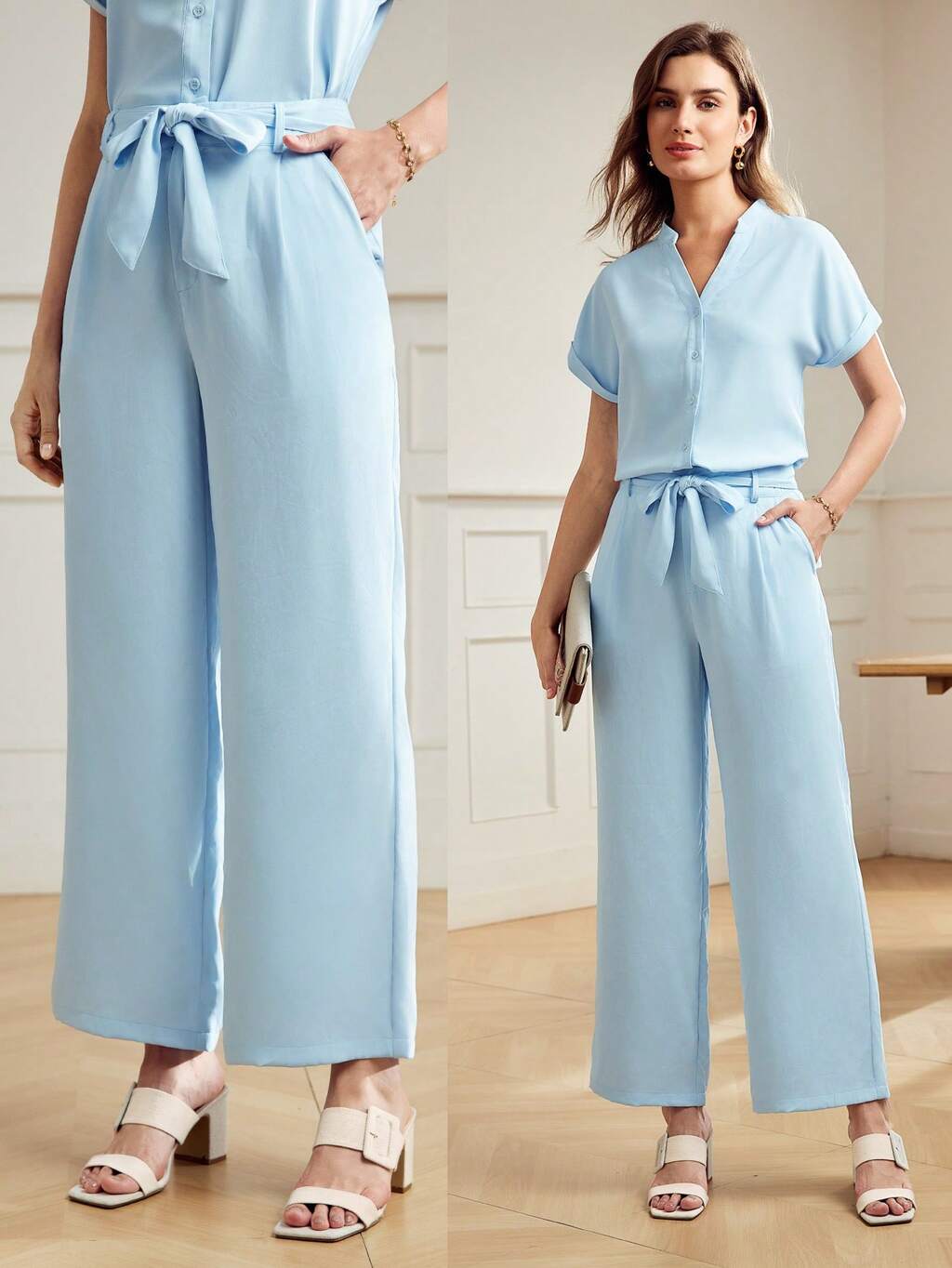 MOTF Classy CALÇA DE PERNA LARGA COM CINTURA E BOLSOS INCLINADOS SÓLIDOS