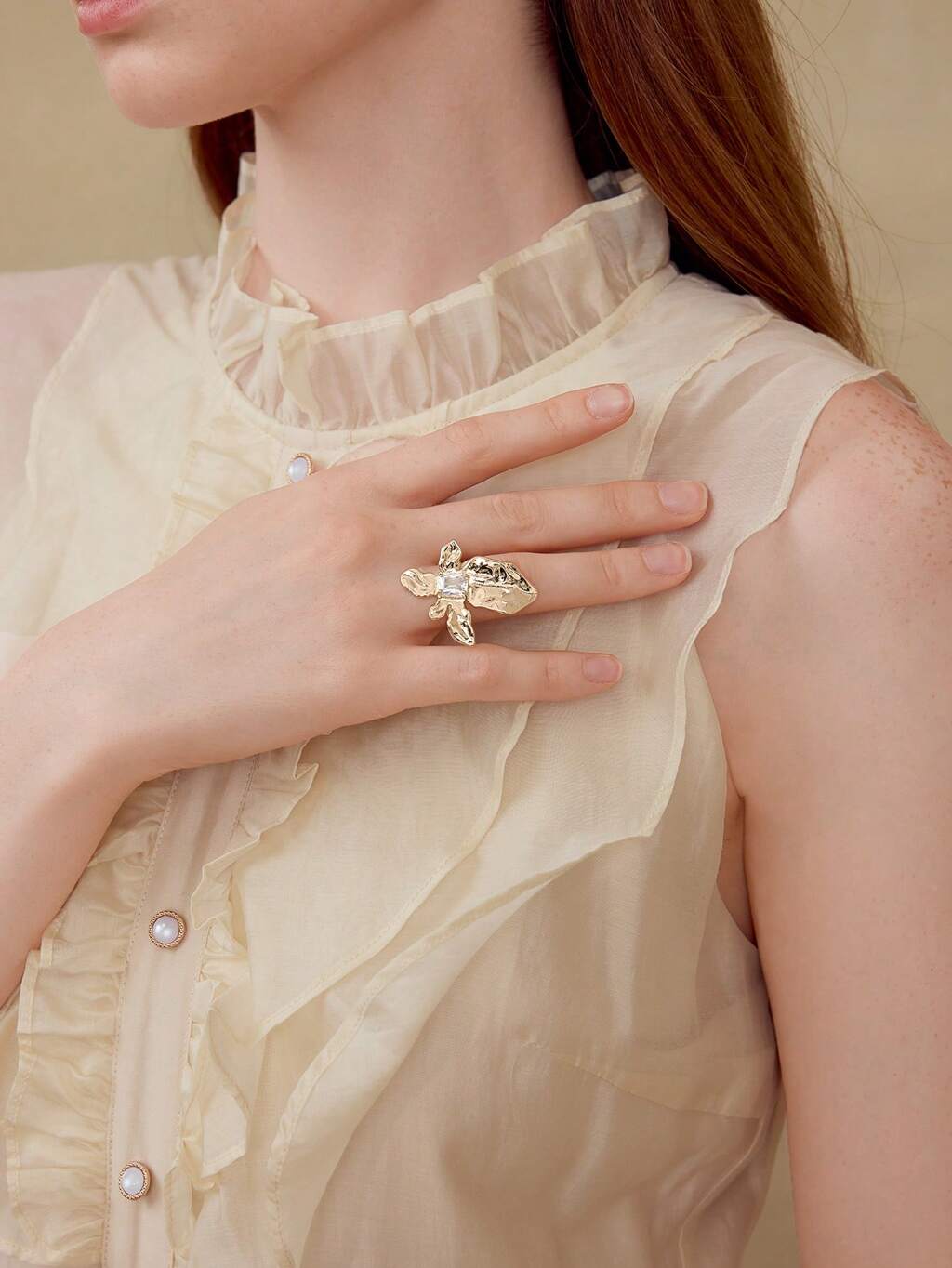 ANEL ABERTO FLORAL DE STRASS