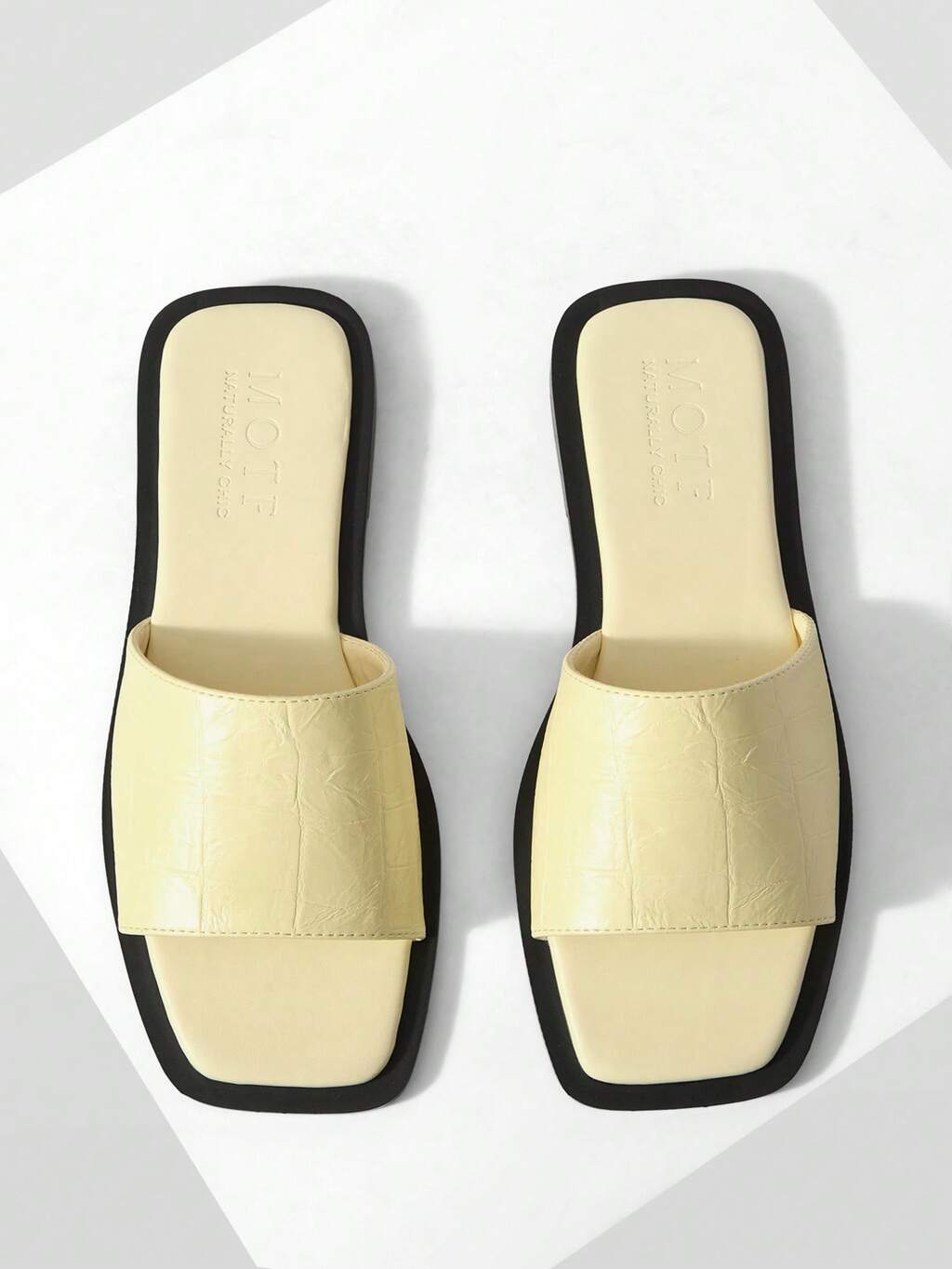 Sandálias Casuais Leves e Confortáveis, Estilo Retrô da Moda, Couro PU Amarelo Claro com Estampa de Pedra, Bico Quadrado Aberto, Sola Plana, Versáteis e Adequadas para a Praia