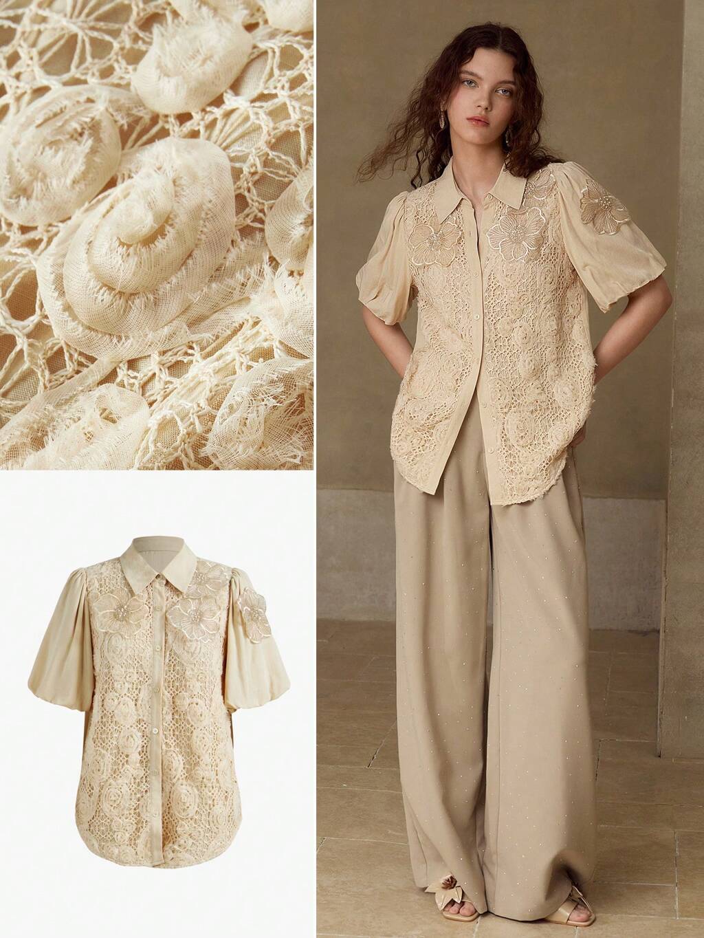 CALÇAS RETAS CASUAIS ELEGANTES FEMININAS COM BORDADO VAZADO