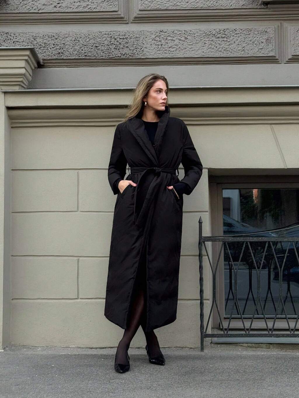CASACO LONGO DE INVERNO FEMININO SÓLIDO COM CINTO