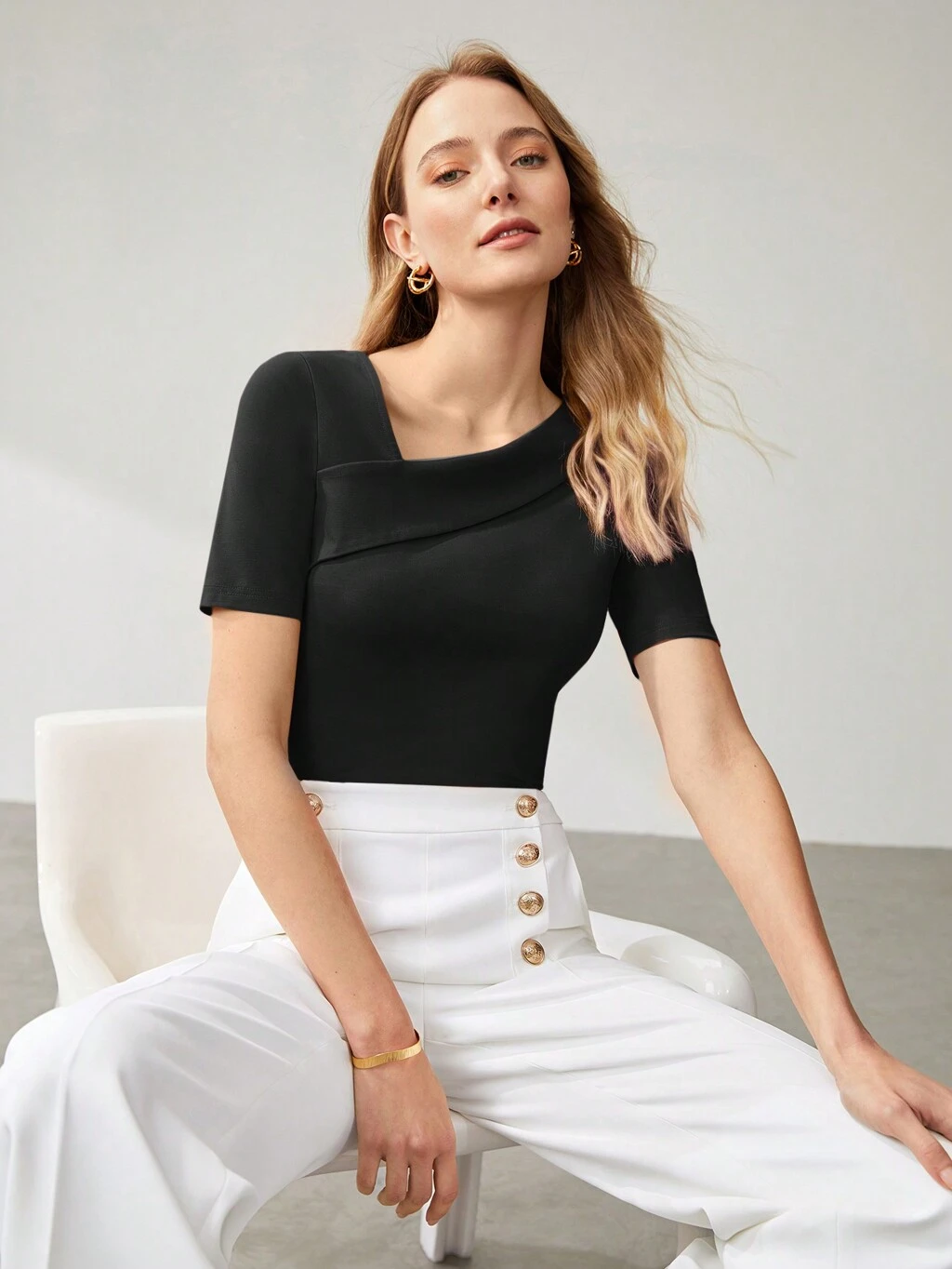 ASYMMETRIC TWIST COLLAR FITTED T-SHIRT, AUTUMN/WINTER