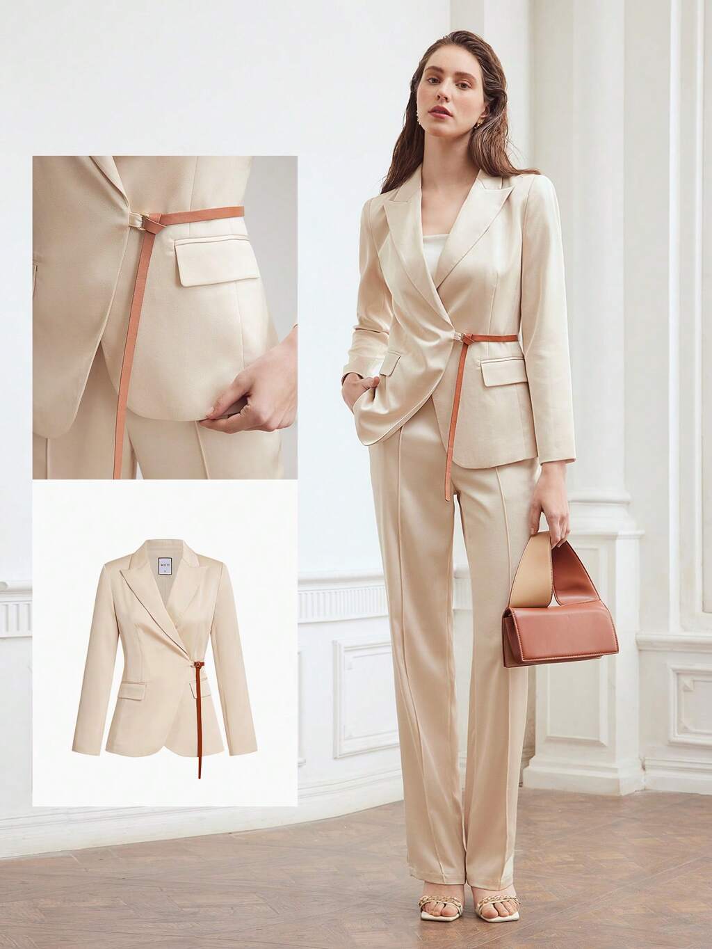 WOMEN'S WRAP BELT SUIT BLAZER, COMMUTER FRIENDLY